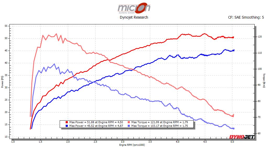 Durch die Abstimmung bei uns geht jetzt noch mehr - besonders bei mittleren Gasgriffstellungen steigen Leistung und Drehmoment um fast 14%